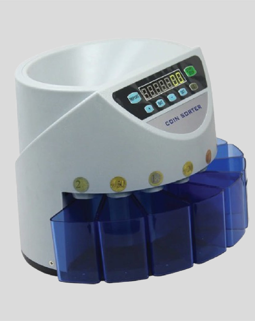 This coin counting and sorting machine is ideal for businesses that handle large volumes of Pakistani coins, offering precise sorting, batching, and total counting capabilities to streamline financial operations.