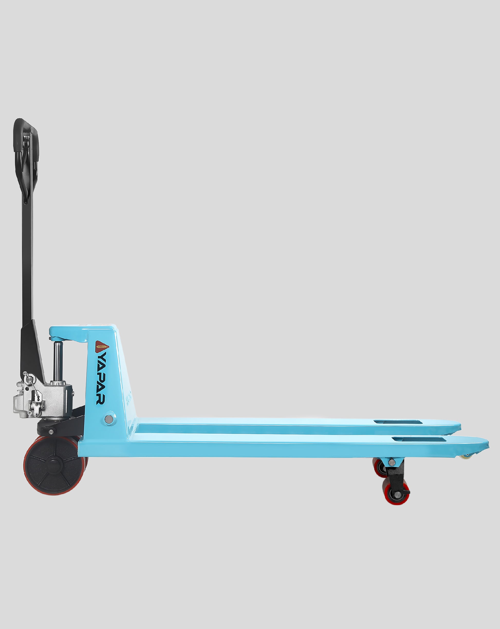 The YAPAR YPT25 Pallet Truck is built for strength, durability, and operator comfort. With its robot-welded chassis and reinforced forks, it ensures long-term performance and reliability. The ergonomic handle with anti-slip coverage offers safe and comfortable handling, while entry and exit rollers make pallet operation effortless. Equipped with a high-quality hydraulic pump, this pallet truck provides a long service life with minimal maintenance.