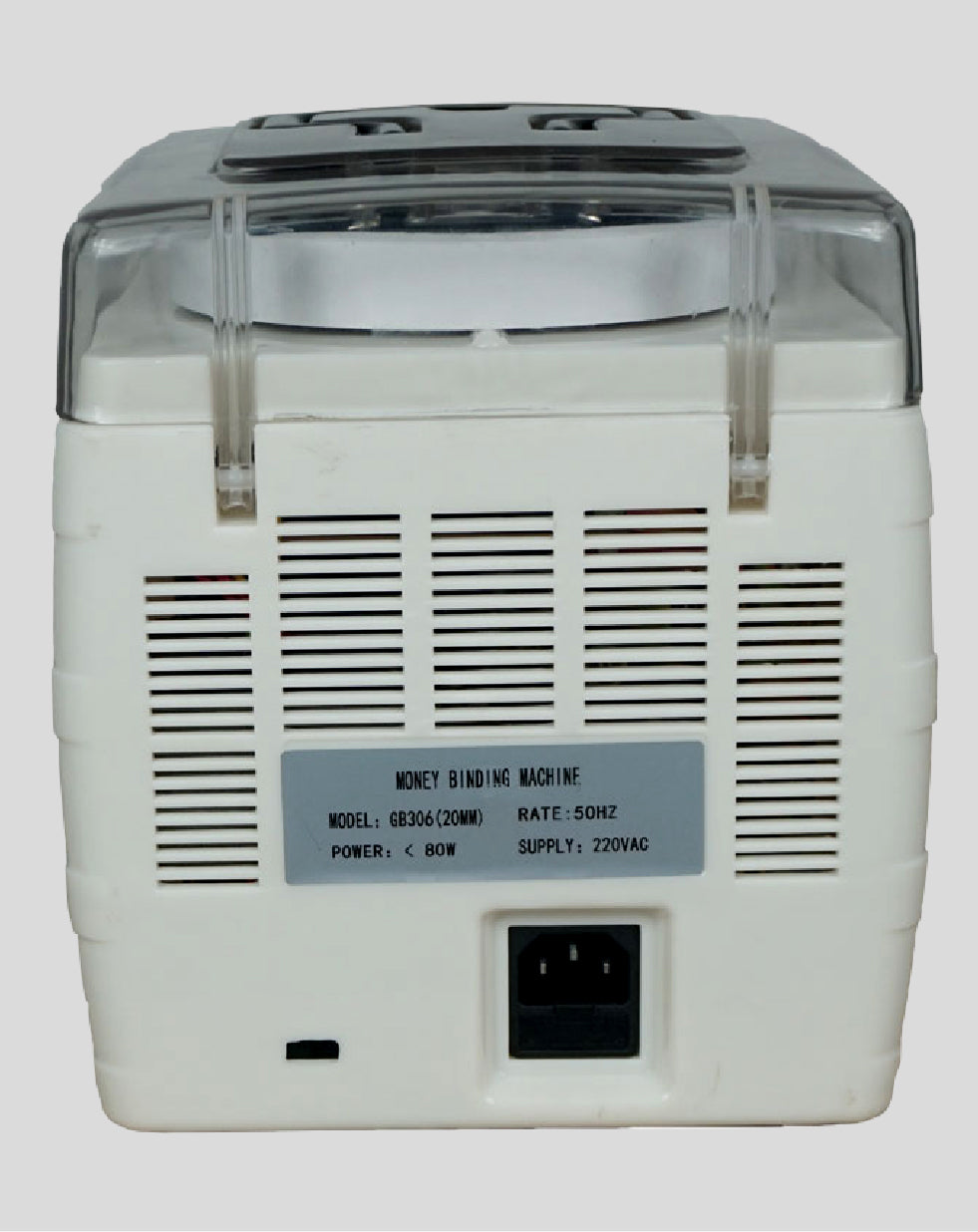 Micro-computer controlled note bundling machine with fast 2-second bundling speed. Features automatic horizontal & lateral bundling, short 20-second preheating, and continuous tape leading. Compact design, energy-efficient, and suitable for bundling up to 100 notes with precision.