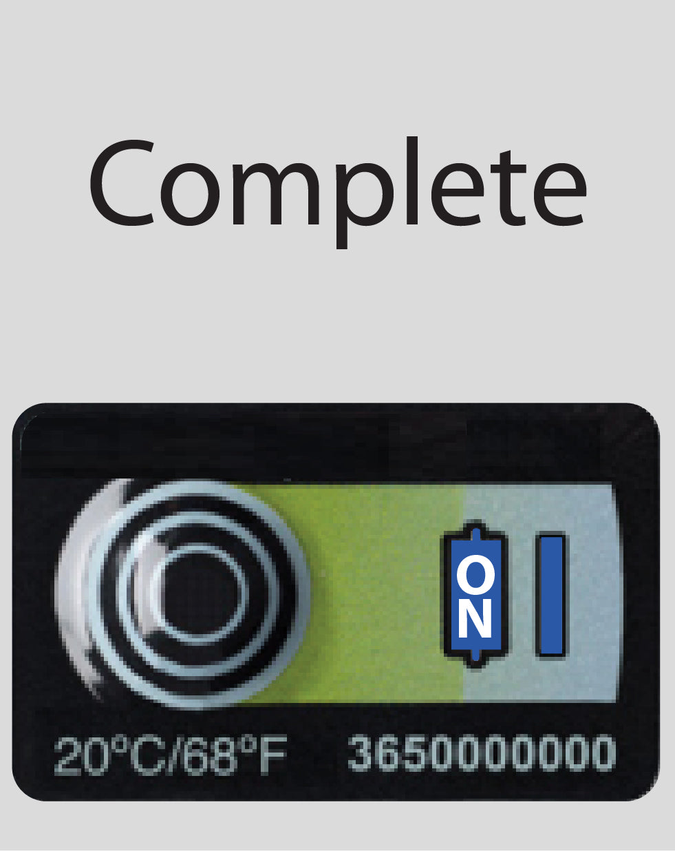 - Activation Blister: 20°C / 68°F; located on top for simple activation